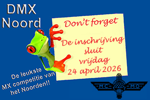 Het wedstrijdschema voor de DMX Noord wedstrijd op zaterdag 11 april 2026 op het circuit van de MSV Motordrenthe in Westerbork is bekend, om het te bekijken klik hier.Let op: Dit wedstrijdschema is indicatief, er kunnen geen rechten aan worden ontleent. |