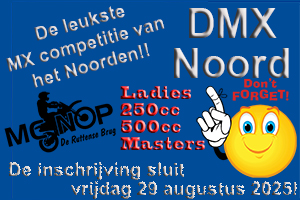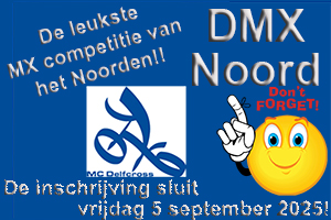 Lees voor de details het reglement op de DMX Noord website en het KNMV Motocross (Technisch) reglement goed door! |